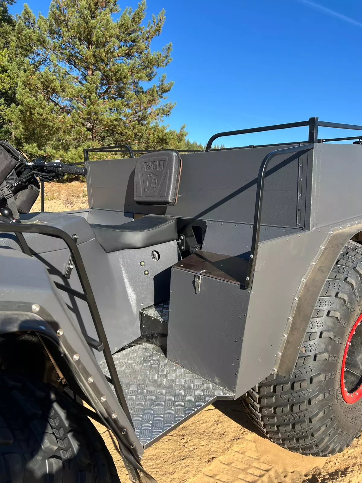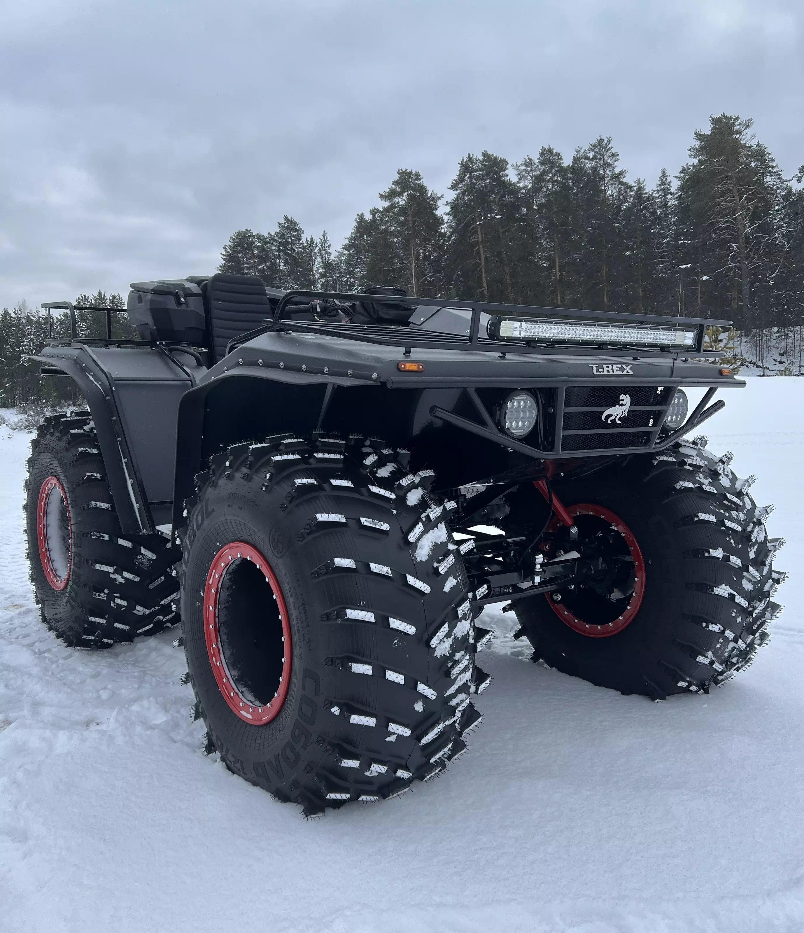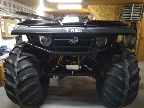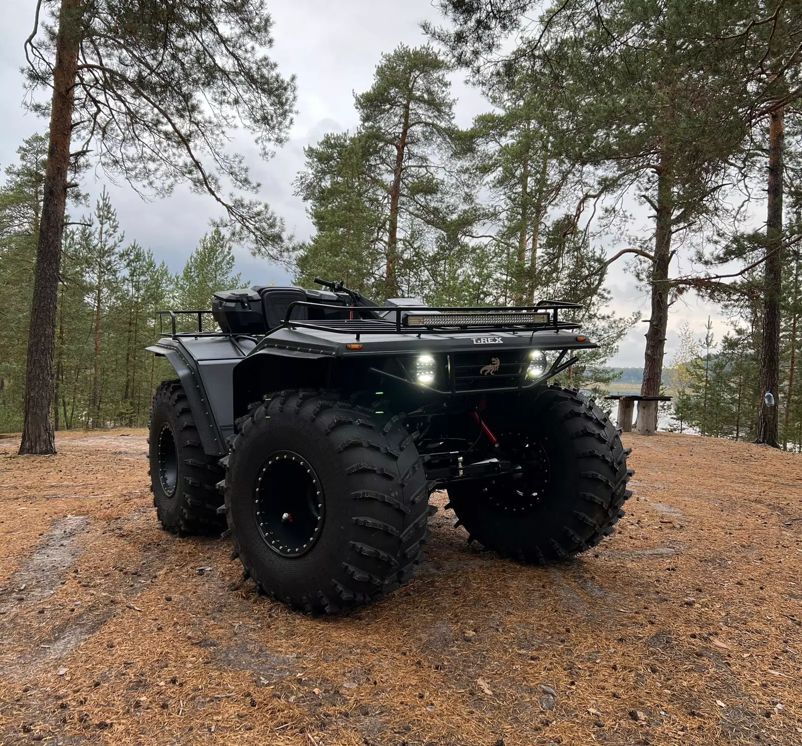 T-REX — мощный квадроцикл с двигателем Toyota 1NZ-FE на 109 л.с., мостами УАЗ и дисковыми тормозами. Большой бак на 70 литров и гидроусилитель руля обеспечивают комфорт и дальние поездки. Для тех, кто ценит мощь и надёжность в одном квадроцикле.