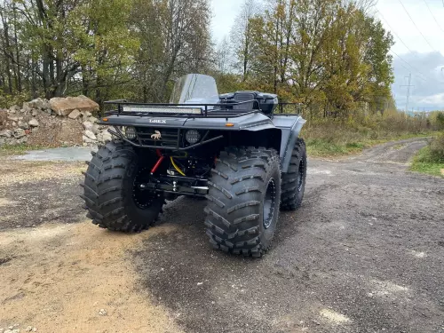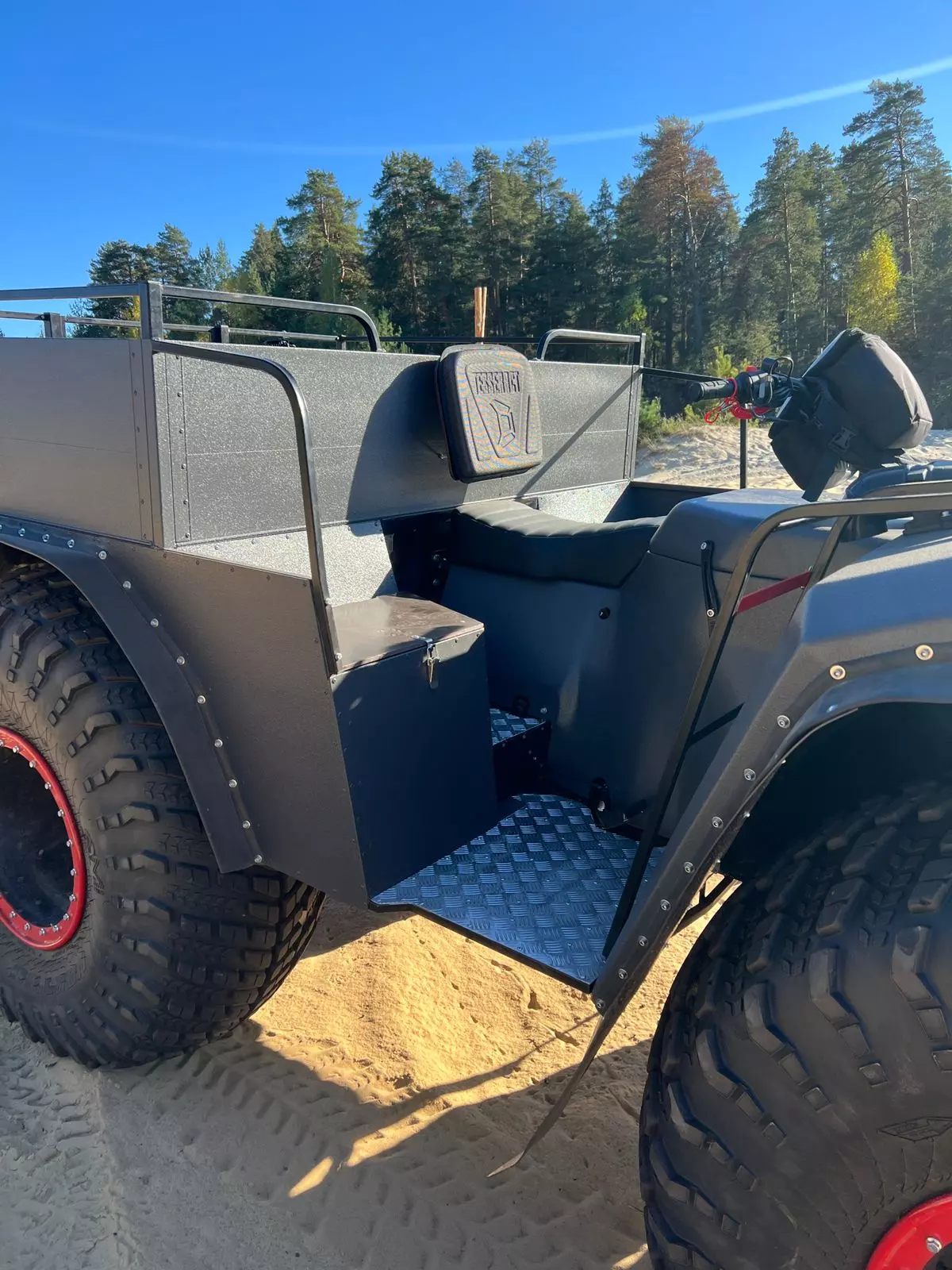T-REX Профессионал — квадроцикл который действительно впечатляет своими характеристиками и возможностями. Двигатель Toyota мощностью 130 л.с. обеспечивает превосходную производительность и надежность. Это означает, что квадроцикл способен быстро разгоняться и поддерживать стабильную скорость даже на сложных участках дороги. Такой мощный мотор также гарантирует плавное движение и уверенность водителя в любой ситуации. Автоматическая коробка передач значительно упрощает управление, позволяя водителю сосредоточиться на дороге и наслаждаться поездкой. Благодаря этому элементу, поездка становится комфортной и безопасной, особенно на бездорожье. Подвеска с усиленными элементами и большими колесами обеспечивает отличную устойчивость и амортизацию ударов. Центральные болты рессор повышают прочность конструкции, что важно при движении по ухабистым дорогам. Эта особенность делает квадроцикл идеальным выбором для любителей экстремальных поездок и приключений. Топливный бак объемом 70 литров позволяет путешествовать на большие расстояния без необходимости частых остановок для заправки. Возможность преодолеть большие расстояния на одном баке топлива существенно расширяет возможности владельца. Лучшая конструкция рулевого управления обеспечивает точное маневрирование и контроль над транспортным средством. Независимо от типа поверхности, водитель сможет уверенно управлять квадроциклом, чувствуя себя комфортно и защищенно. Таким образом, T-REX Профессионал представляет собой универсальное транспортное средство, подходящее для широкого круга пользователей, включая тех, кто ищет надежный и мощный квадроцикл для активного отдыха, охоты, рыбалки и путешествий.