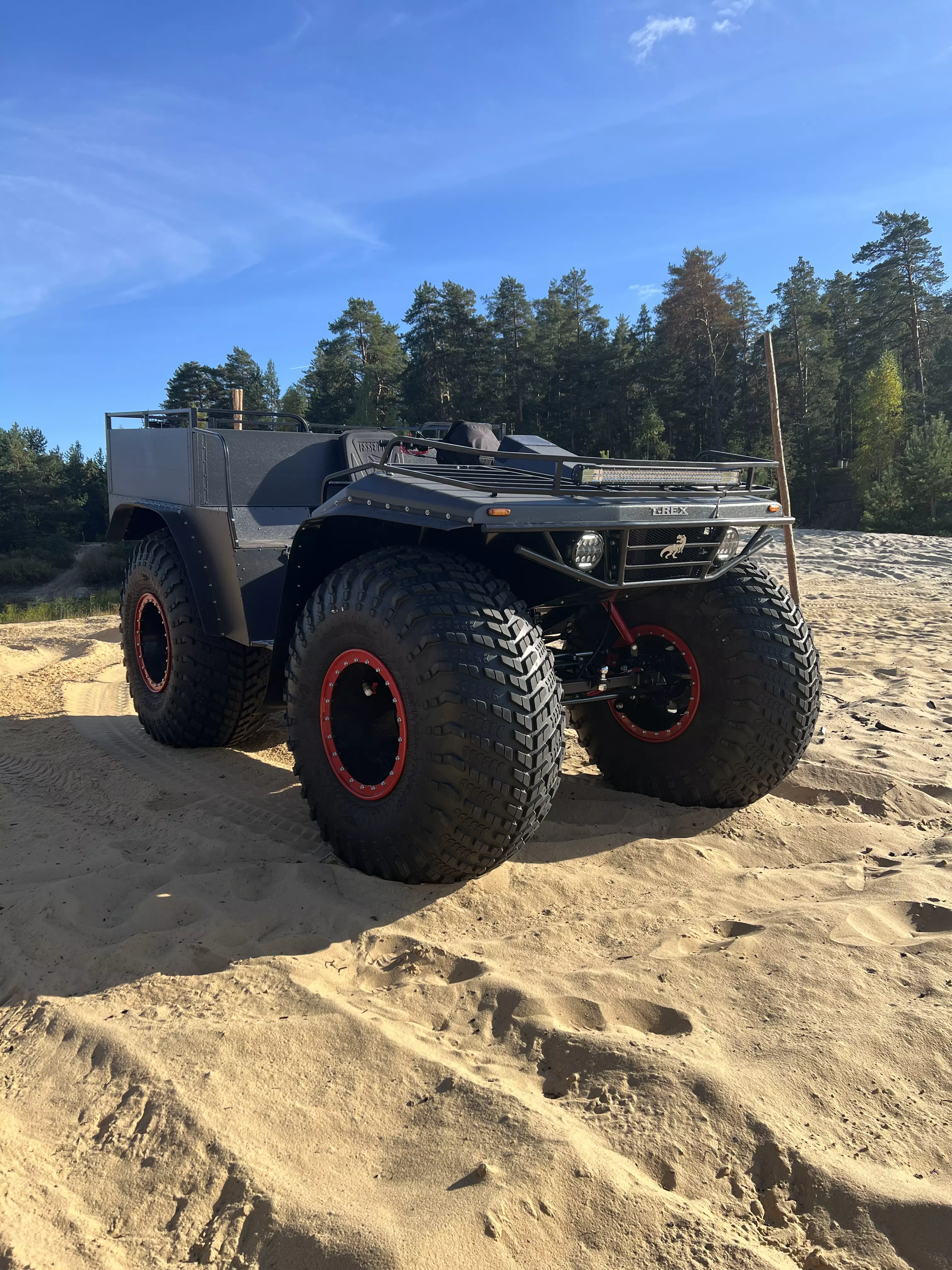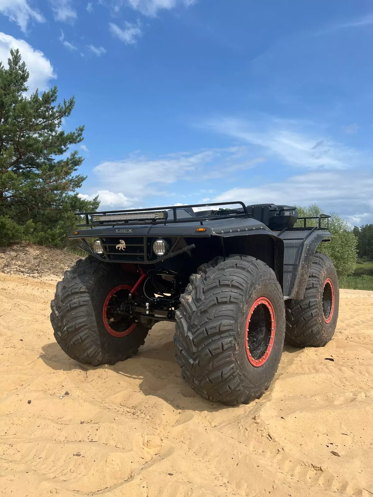 T-REX — мощный квадроцикл с двигателем Toyota 1NZ-FE на 109 л.с., мостами УАЗ и дисковыми тормозами. Большой бак на 70 литров и гидроусилитель руля обеспечивают комфорт и дальние поездки. Для тех, кто ценит мощь и надёжность в одном квадроцикле.